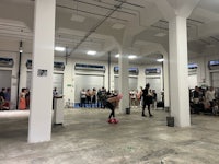 We broke bottles near the public until they ended up close to the wall and the gallery.